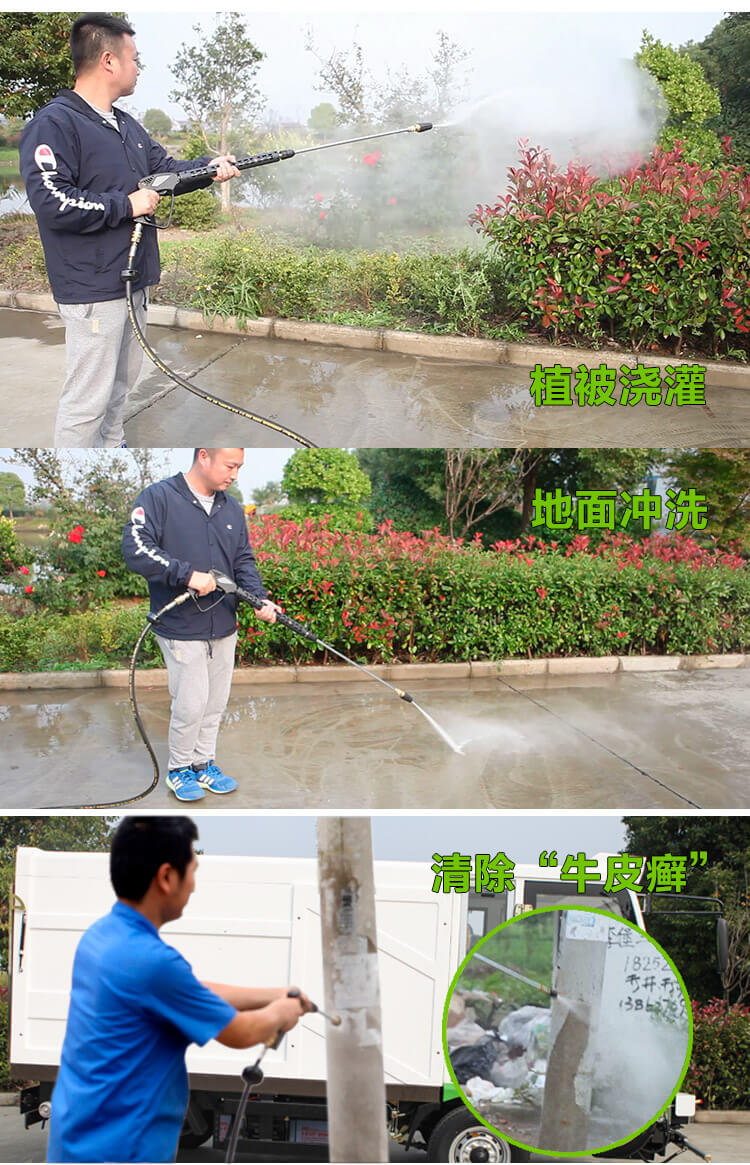 l 后置手動高壓噴槍,高端15米長卷盤管配套高壓水槍,操作方便簡易且省時省力,作業范圍大,輕松清理集中污漬和街邊小廣告。